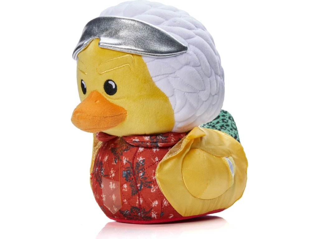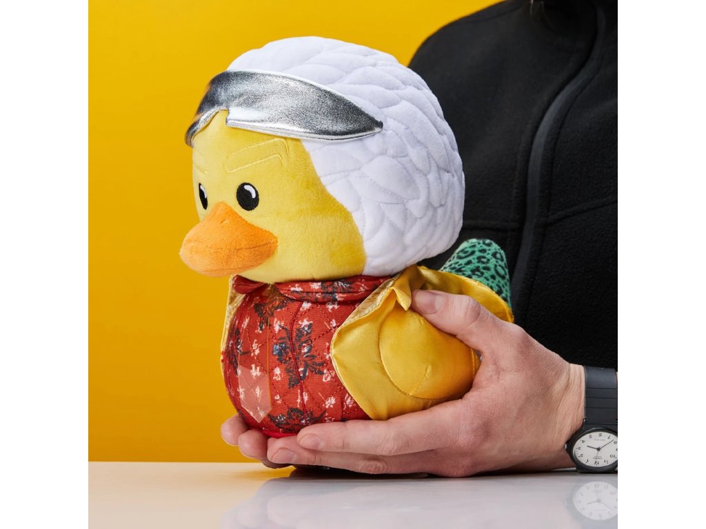 Doktor Emmett Brown jako plyšová kachnička? Proč ne. Jeho ikonické bílé vlasy, šílené nápady a věčné hlídání časové kontinuity mu zůstaly i v plyšové podobě. Hodinky připravené, mozek jede na plné obrátky a kdyby tu byl DeLorean, už by startoval. Tahle plyšová verze slavného vynálezce je ideální parťák pro každého fanouška, který ví, že i malý krok zpátky v čase dokáže nadělat pořádné vlny.